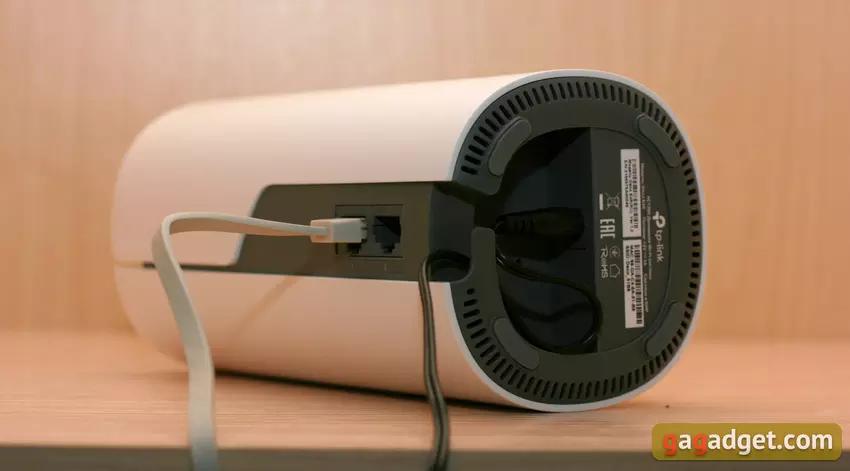 Deco E4R wyposażony w dwa porty RJ-45. Do jednego trzeba podłączyć zewnętrzny kabel internetowy, a do drugiego, na przykład, komputer. Lub nic, jeśli nie potrzebujesz połączenia przewodowego. Do jakiego portu podłączać nie ma znaczenia, system rozpoznaje typ połączenia sam. Urządzenie jest wyraźnie ukierunkowane na sieć bezprzewodową, więc będzie potrzebny osobny przełącznik (może być zawarty w drugi port) do podłączenia wielu urządzeń za pomocą kabli.