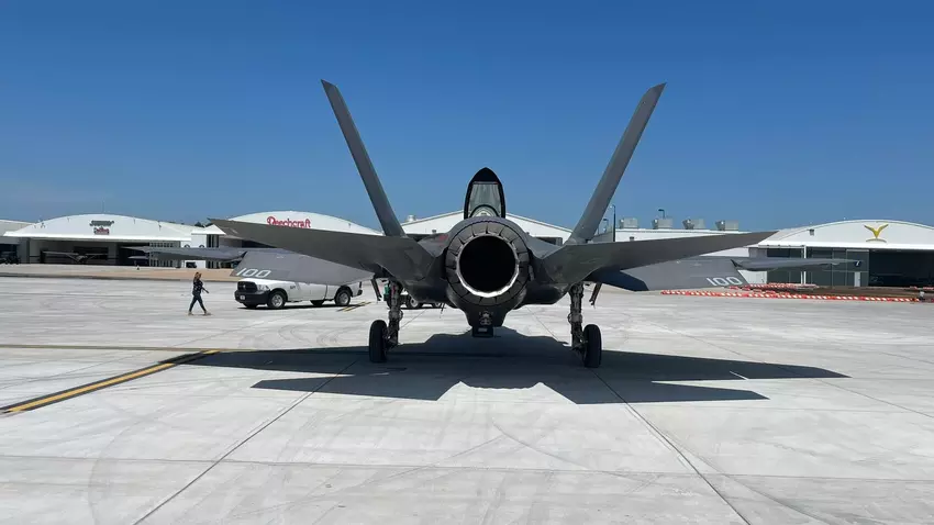 Myśliwiec piątej generacji US Navy F-35C Lightning II zatrzymał się na lotnisku Wichita Dwight D. Eisenhower National Airport.