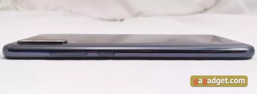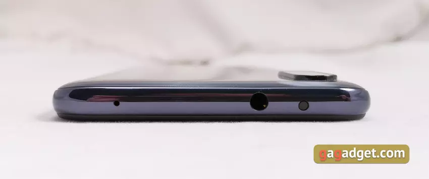 Panel tylny jest wykonany z Gorilla Glass piątej generacji (jak na ekranie). Smartfon jest dostępny w trzech kolorach, przyszedł do nas najbardziej „konserwatywny” szary. Ale nie wygląda też nudno dzięki opalizującym odcieniom: