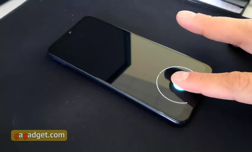 Skaner linii papilarnych działa zaskakująco szybko i dokładnie. Czego tak naprawdę nie oczekujesz od niedrogiego smartfona. Skaner optyczny: odcisk palca jest podświetlony do skanowania. Z mokrymi rękami oczywiście nie działa.